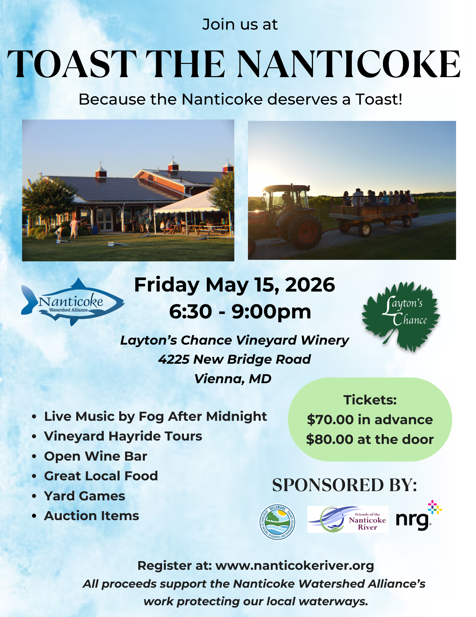Money & form can be sent to Nanticoke Watershed Alliance at PO Box 111 Vienna, MD. 21869